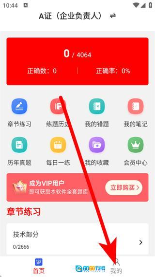 1、在安全员全题库的首页,点击底部的“我的”选项,即可进入个人页面。
