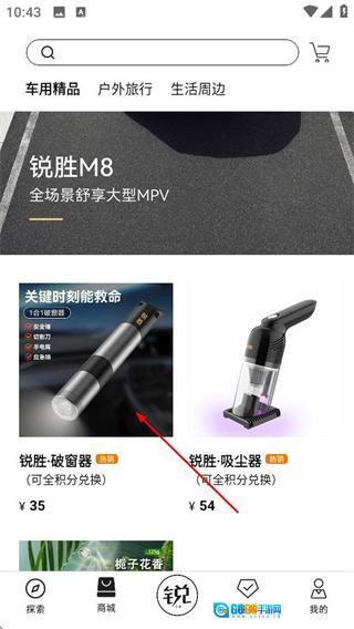 1、进入锐胜汽车后,点击底部的商城选项,可进入商品页面。