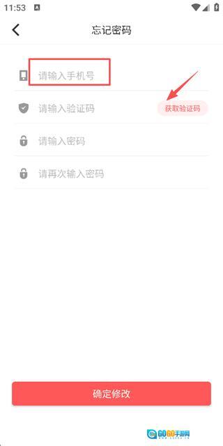 2、在忘记密码页面输入手机号后,点击获取验证码按钮获取验证信息。