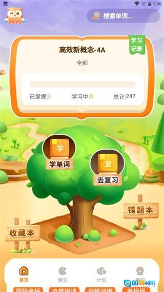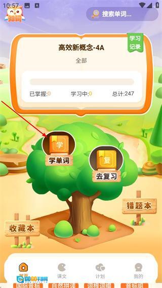1、进入首页后,点击学单词选项,可进入单词学习页面。