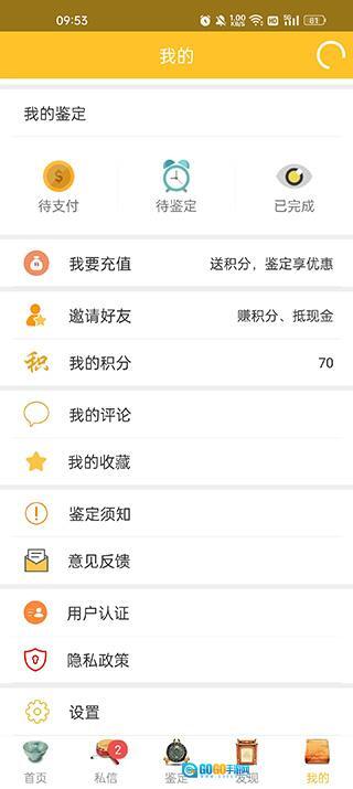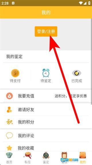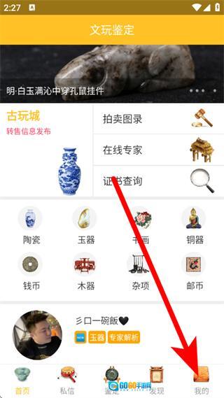 1、在文玩鉴定首页页面,点击底部我的,进入个人页面。