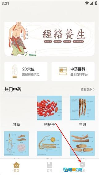 1、进入中医穴位图后,点击底部导航栏的我的选项,可进入个人中心页面。