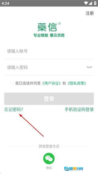 2、在登录页面中,点击忘记密码选项,可进入找回密码页面。