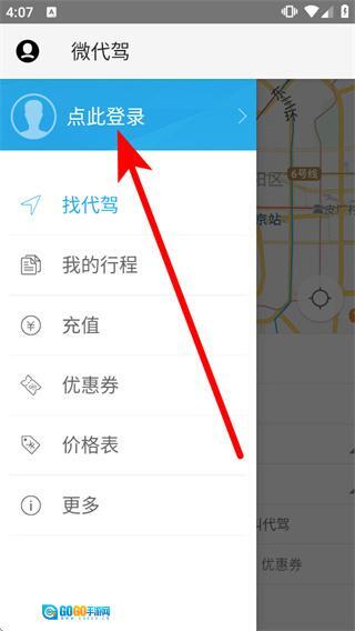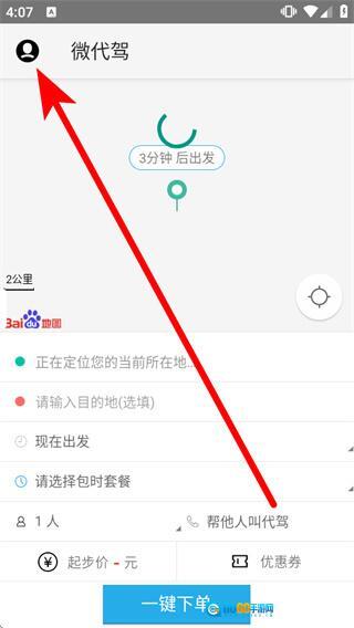 1、打开微代驾,点击首页左上角的个人图标,弹出功能菜单。