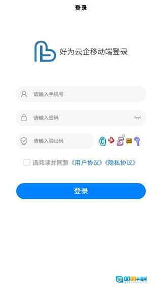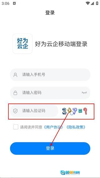 2、之后我们在好为云企的登录界面,输入手机号与密码对应的信息。