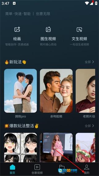 1、在该创作类首页,点击底部的我的选项,进入个人页面。