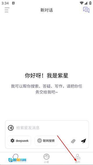 2、在新对话页面,点击底部的我的选项,进入个人中心页面。