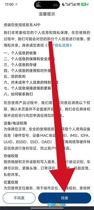 1、打开顺易充,弹出弹窗后,点击同意,进入主界面。