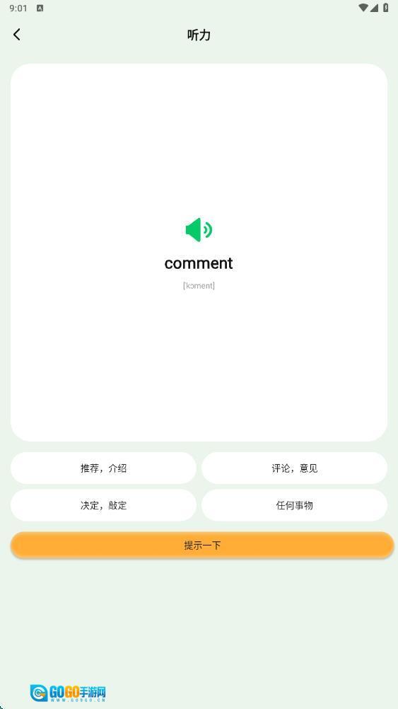 3、提示功能可以帮助你了解每个单词的词义,知晓其具体的中文解释。