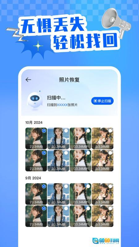 1、开启深度扫描功能,系统会自动搜索手机内存与SD卡中因误删、格式化而丢失的照片,即便是过期的微信缓存图片也能被精准定位到。