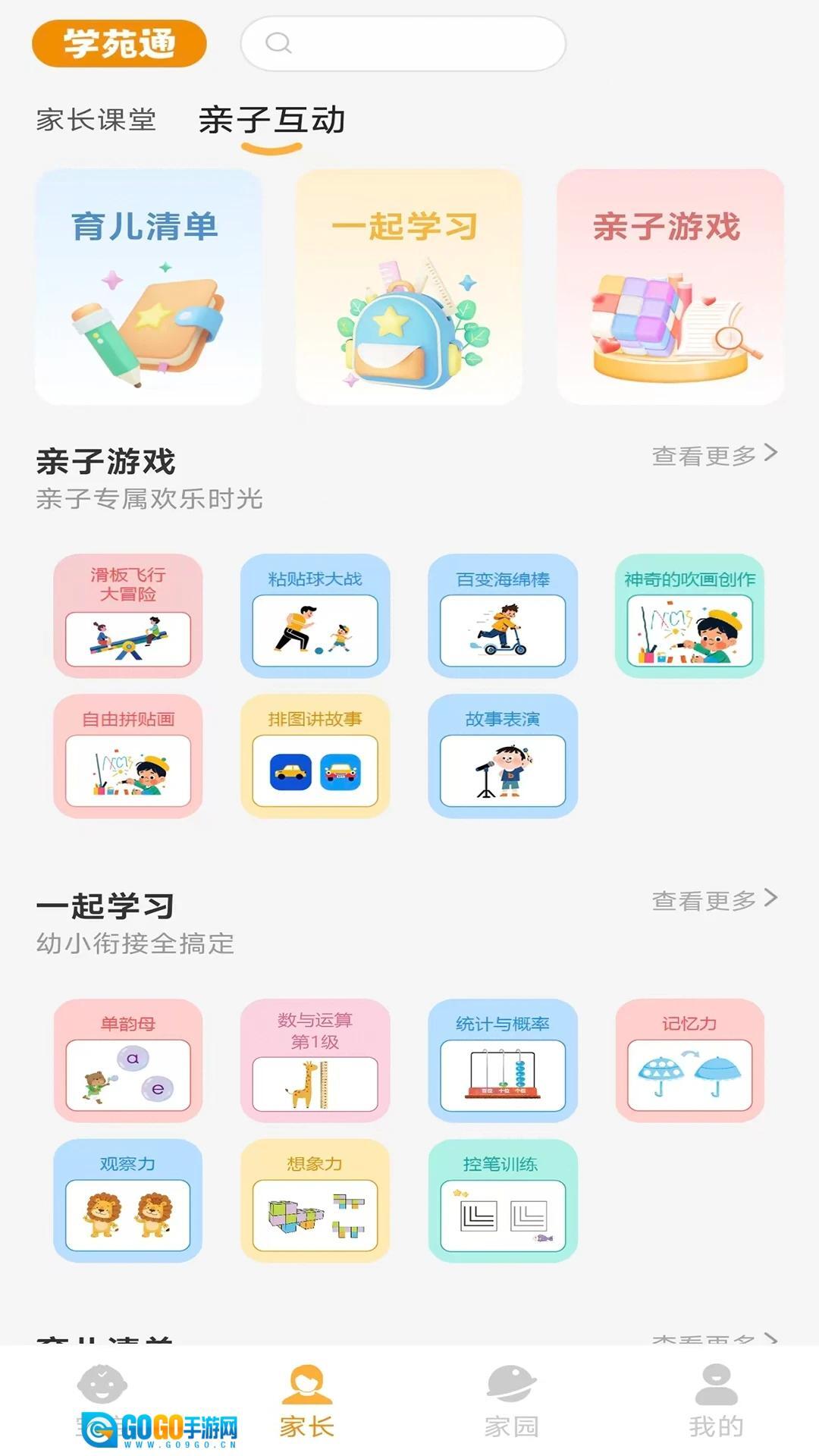3、亲子互动环节涵盖育儿清单、共同学习、亲子游戏等多个版块。