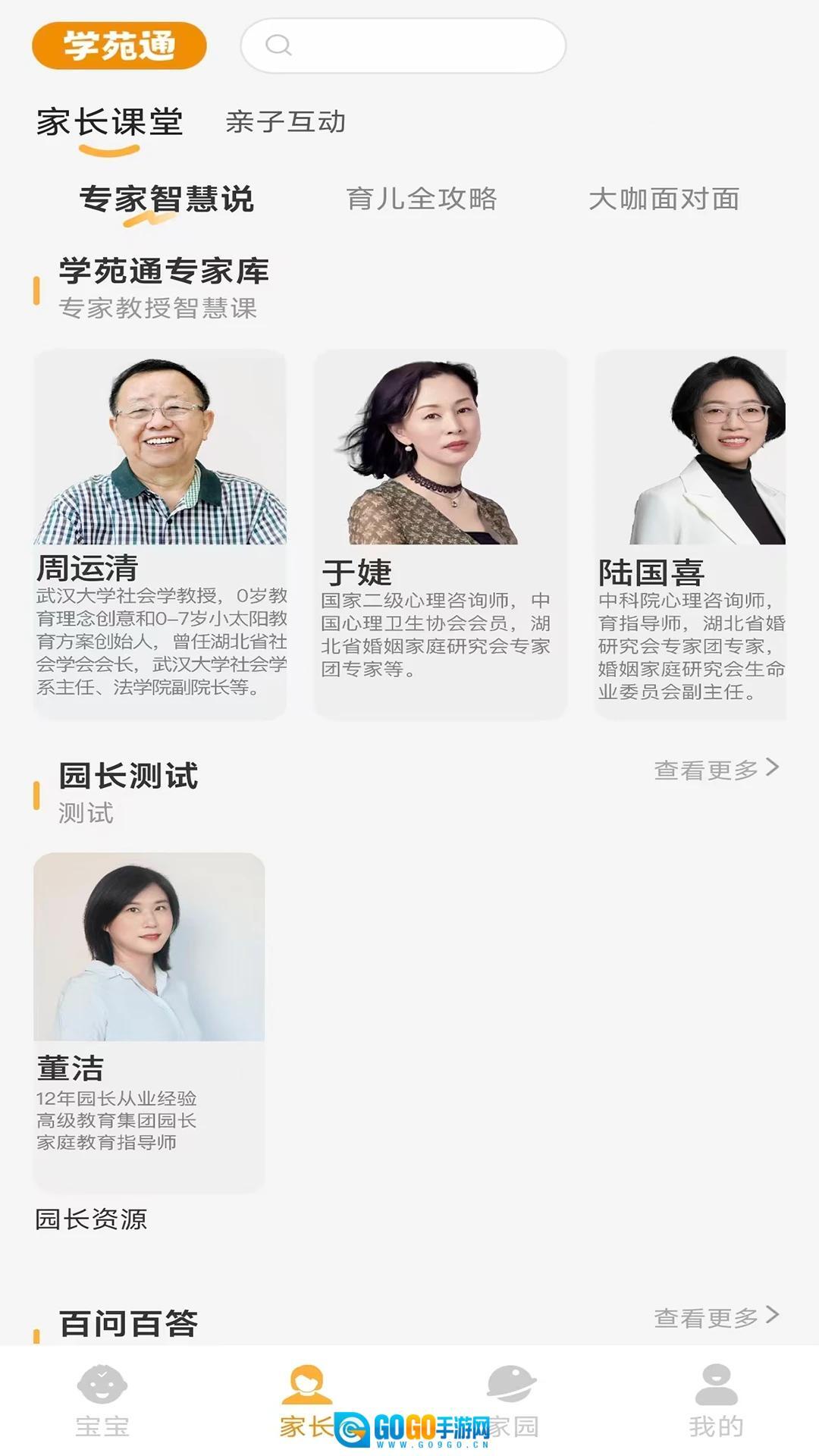 2、家长可通过家长页面获取家长课堂及亲子互动相关的各类知识。