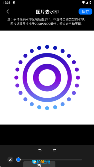 3、进入图片去水印页面后,先从相册上传需要处理的图片,接着选择合适的笔刷大小,再框选出想要去除水印的区域,就能快速完成去水印操作。