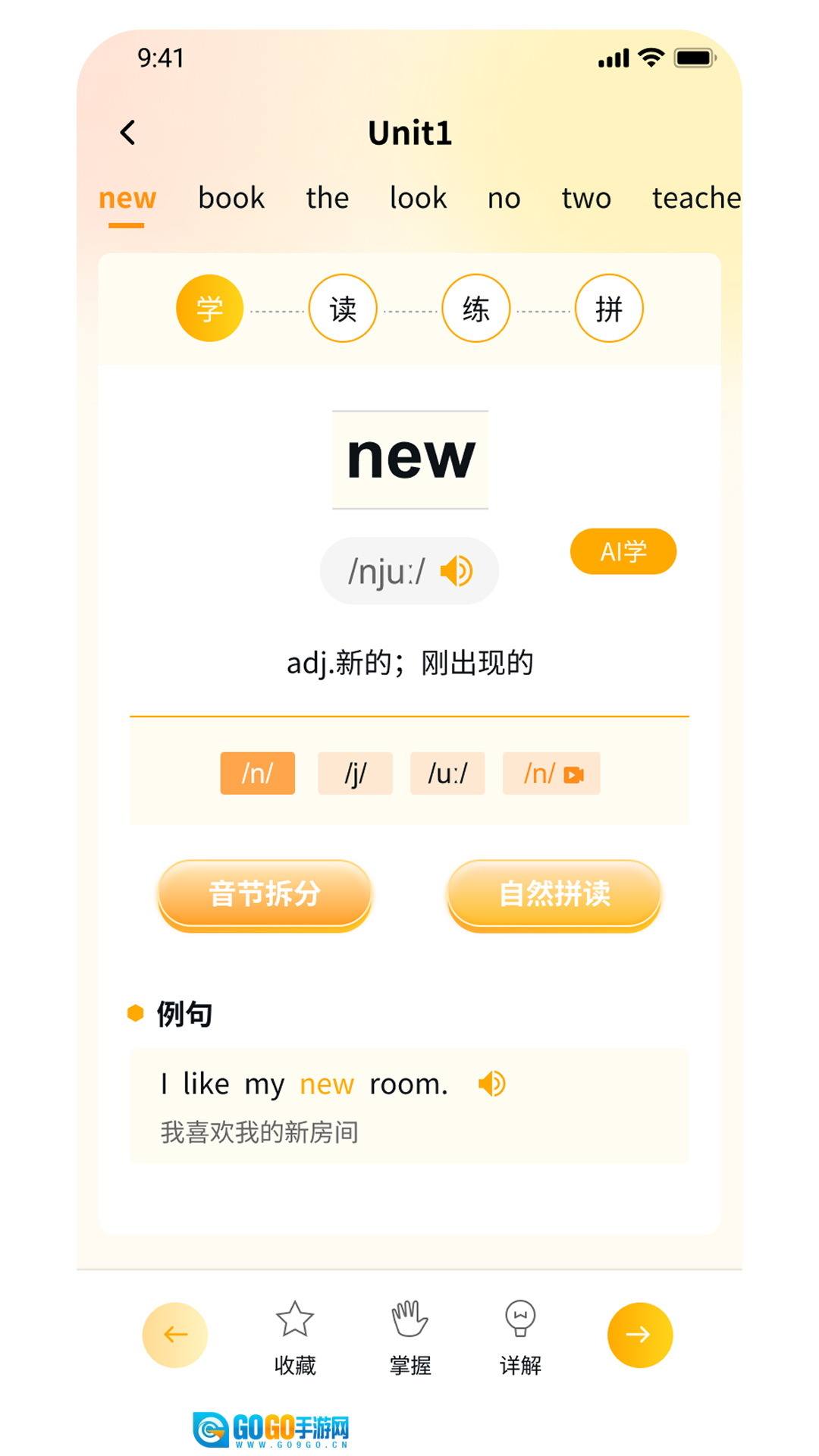 2、创新融合高精度语音识别纠音功能,支持用户逐词跟读练习,系统会即时给出反馈并校准发音,帮助用户全面掌握单词的发音、拼写和含义。