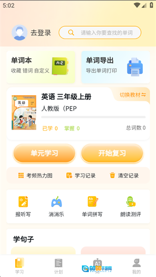 2、学习页面里有丰富的单词本资源,用户可以随时进行学习和复习。