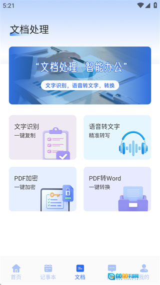 3、整合了文字识别、语音转文字、PDF加密、PDF转Word等多种实用的文档处理工具。