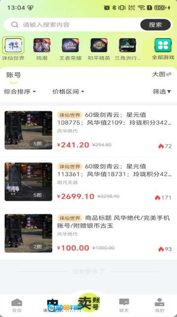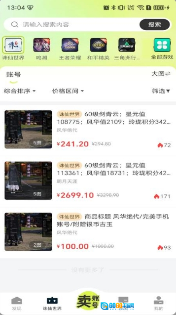 2、装备与成就展示:针对部分游戏账号,支持呈现账号内的装备、成就、荣誉等相关信息,便于买家在交易前直观知晓账号的价值。