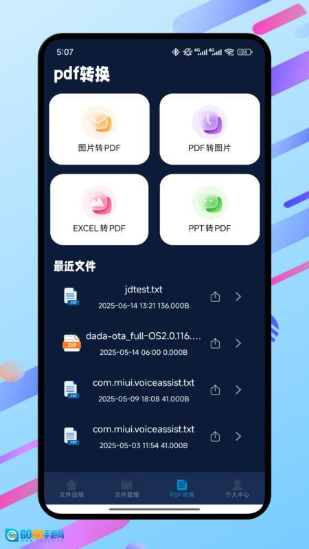 3、PDF转换页面主要提供图片转PDF、PDF转图片、EXCEL转PDF、PPT转PDF等功能支持。