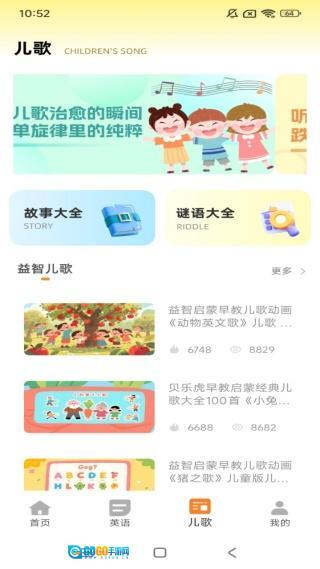 4、儿歌功能不仅收录了海量英语儿歌,还包含故事大全与谜语大全等学习资源。