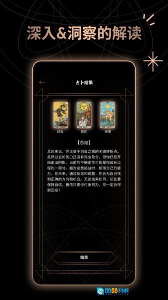 3、互动式占卜体验:部分功能支持用户开展互动式占卜,比如借助语音提问、手势操作等途径完成抽牌,提升占卜的趣味性与沉浸感。