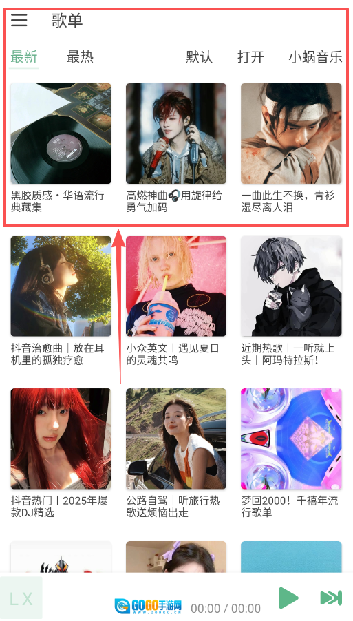 1、启动小蜗音乐后,首先点击下方导航栏的“歌单”图标,你会看到“高燃神曲”或“治愈曲”等多种推荐歌单。