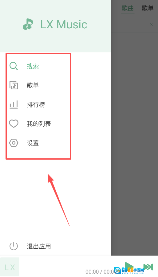 4、应用的核心功能如搜索、歌单、排行榜都位于显眼的导航栏,方便你随时切换,完成听歌后。