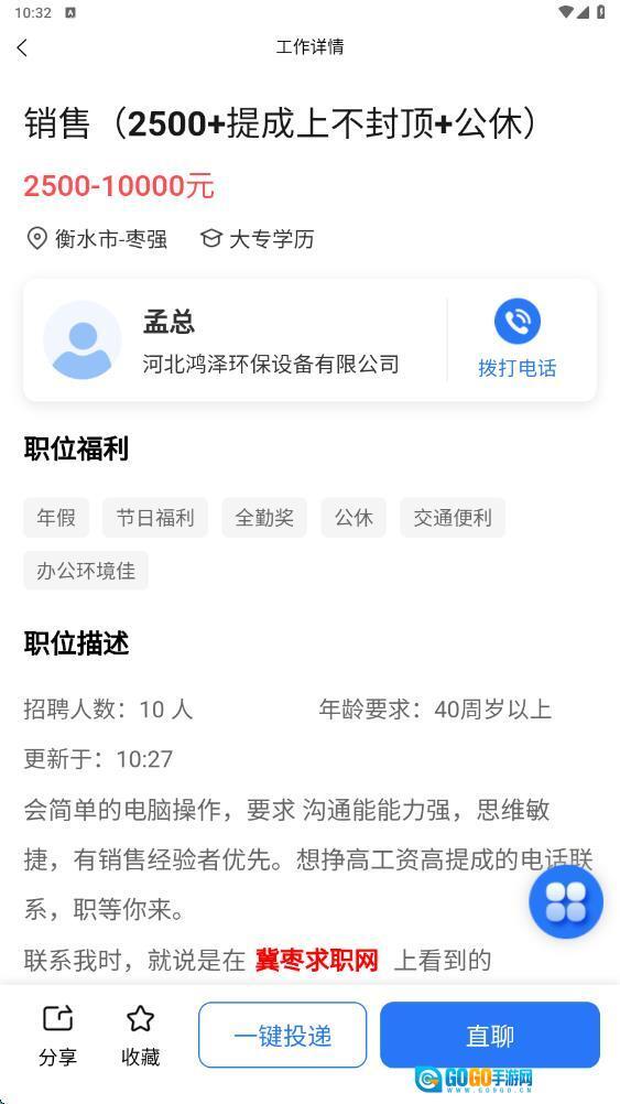 3、细致展示岗位信息,还能在线投递简历或者直聊。