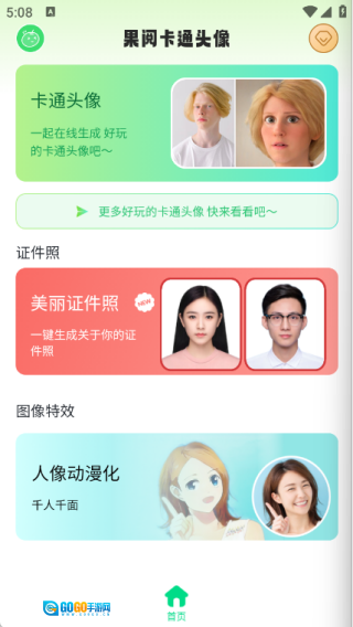 2、进入到首页中提供了卡通头像、证件照以及图像特效的制作;