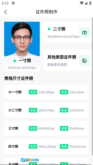 4、选择证件照功能进入,然后选择尺寸,再进入到拍摄或相册中找到照片,然后进行美化即可制作。