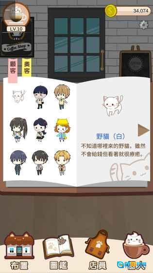 2、丰富收集要素,通过经营可解锁多种店铺装饰、店员服装和猫咪品种,打造独一无二的咖啡厅。