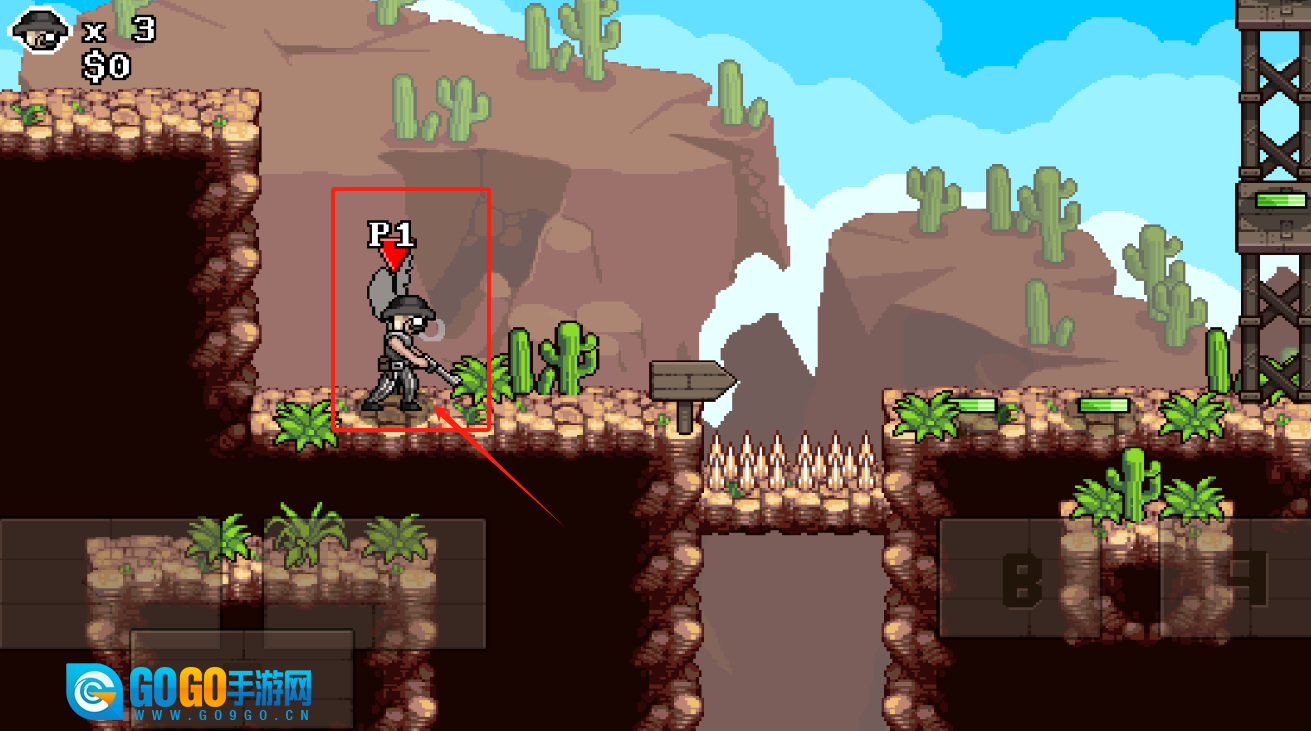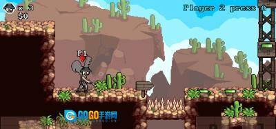 3、通过P1操控角色进行移动与射击,界面会显示3条生命值以及0金钱,B键大概率对应特殊技能。