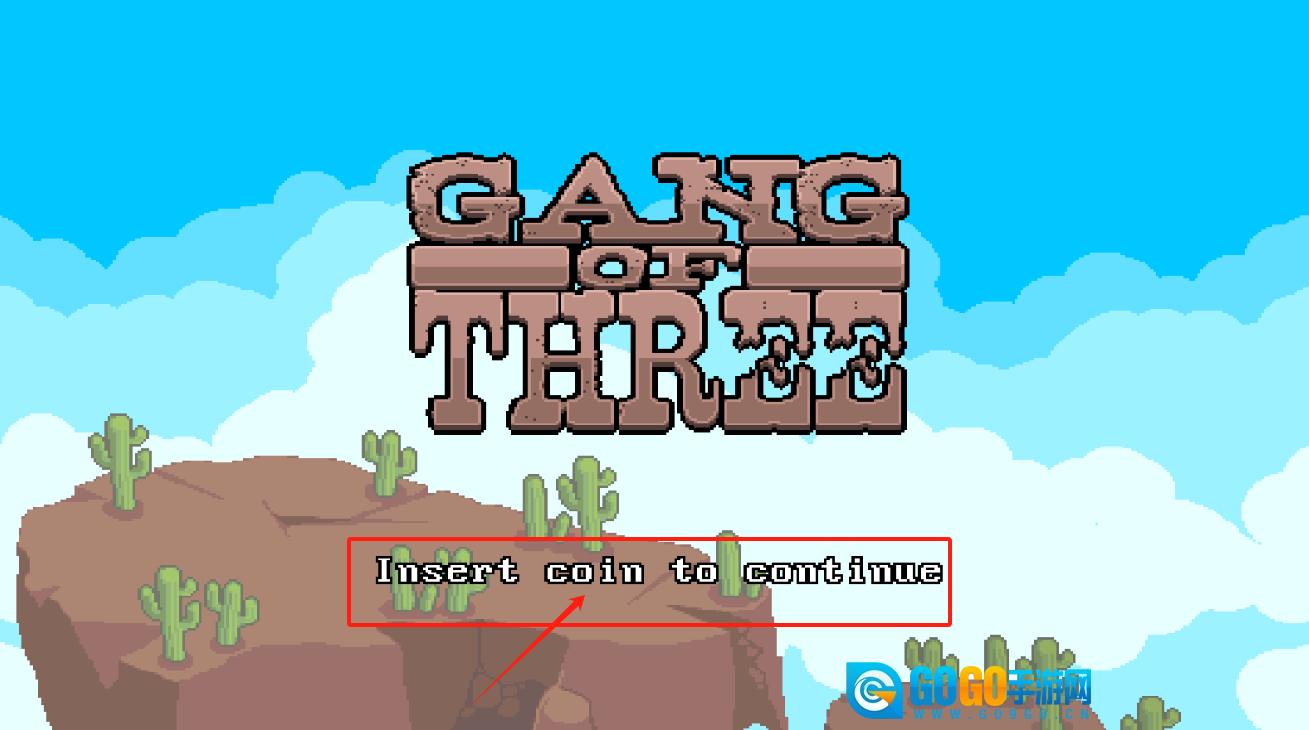 1、需投入硬币方可启动游戏,界面会显示“GANG OF THREE”字样以及插入硬币的提示信息。