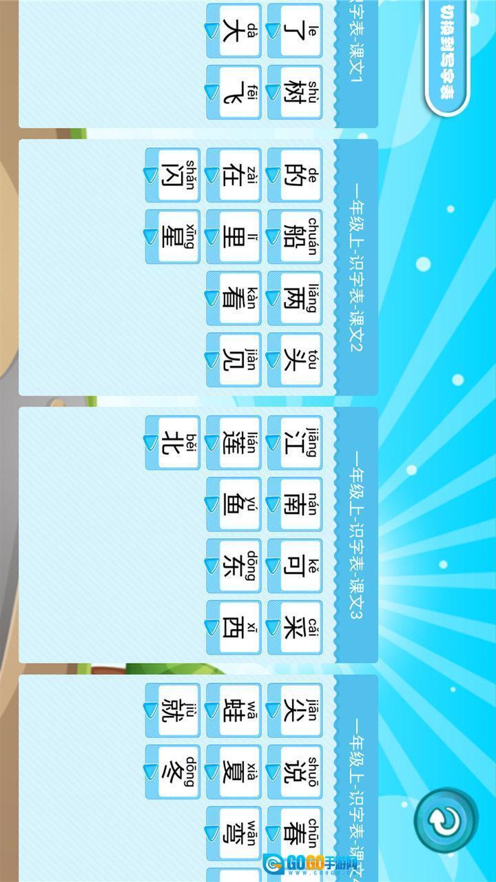 1、学生宝宝学汉字功能能够展示教材包内的汉字,并且支持呈现小学一年级至六年级各单元的汉字内容。
