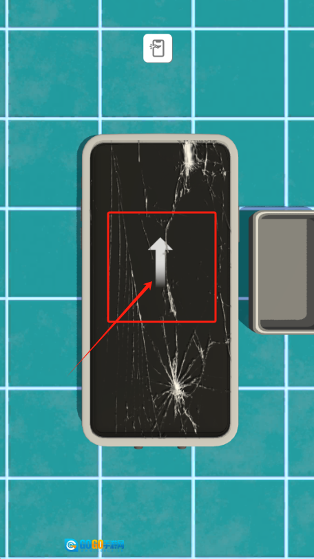 2、点击屏幕中间红框内的向上箭头,即可启动碎屏手机的修理流程。