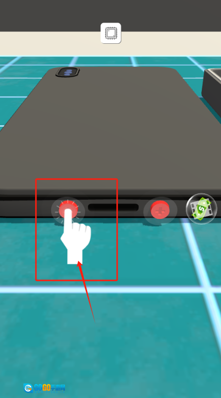 3、按下手机下方三个红色按钮中位于中间的那一个,以继续进行维修操作。