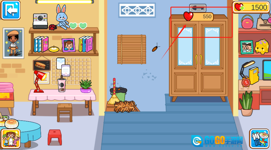 3、衣柜的标价是550爱心,只要攒够1500分就能购买,而且房间还能按照自己的想法自由布置和装饰。