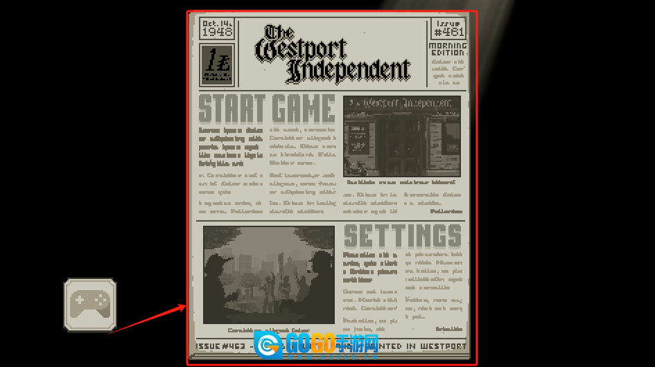 2、在报纸界面中,可选择START GAME开启游戏,也能点击SETTINGS进行设置调整。