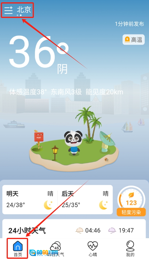2、实时天气查看方法:首页会直接呈现当前位置的天气信息,滑动屏幕即可查看未来天气趋势以及生活指数。