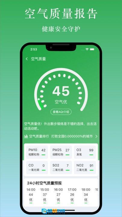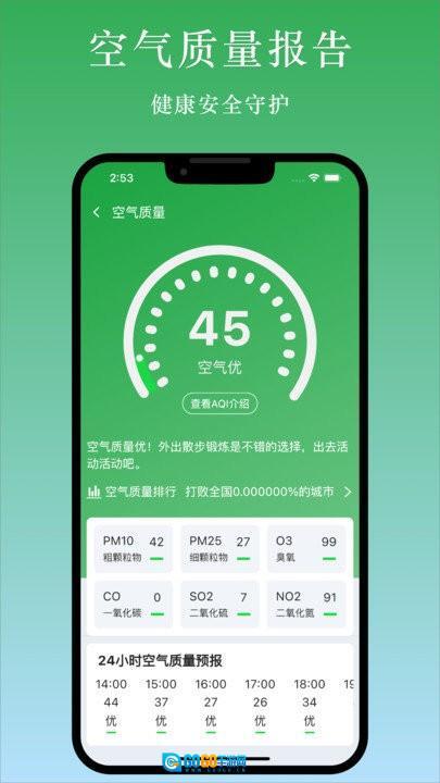 3、实时空气质量追踪系统:对空气质量、PM2.5等指数进行持续更新,并提供未来24小时与15天的空气质量预报。
