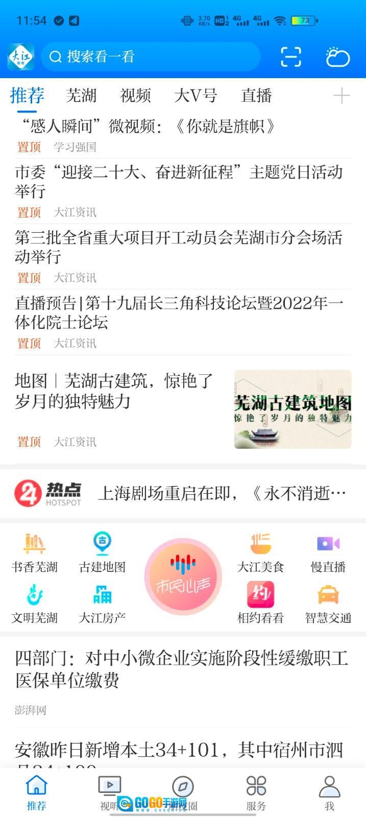 大江看看是芜湖本地居民常用的新闻生活平台。打开它就能知晓芜湖最新发生的各类事件,新闻更新速度非常快。它不仅能提供新闻资讯,还具备直接办事功能,像交水电费、查询社保等生活服务都能在上面完成。平时若想了解芜湖的新鲜事,或是需要办理政府相关业务,使用这个平台会特别便捷。