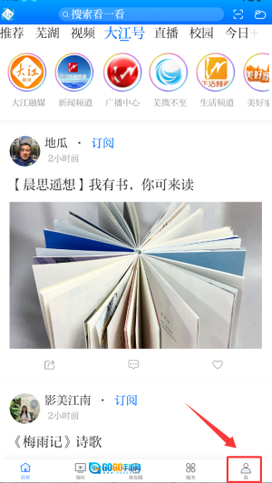 1、打开大江看看应用后,点击界面右下角的“我的”图标,即可进入个人中心页面。