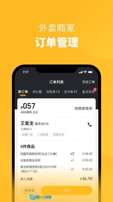 火鸟外卖商家是专门为外卖商家打造的工具。通过手机就能轻松管理订单、查看销售数据,操作便捷。每日营收、菜品销量排行等关键信息一目了然。还能随时修改菜单、调整配送策略,无需频繁到店处理。无论是新开的外卖店铺,还是想优化外卖业务的商家,都可以尝试使用,能切实提供帮助。