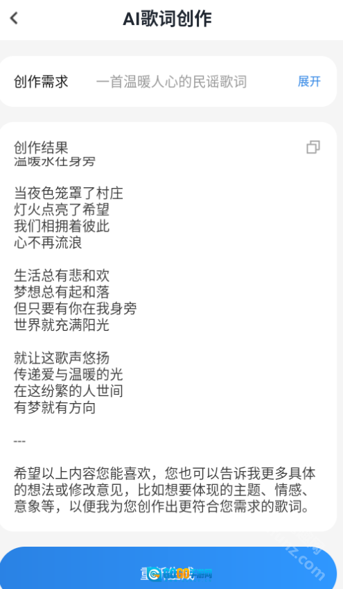 在歌词创作的过程里,AI助手可以为用户提供新颖的思路与灵感,助力用户更出色地完成歌词创作任务。
