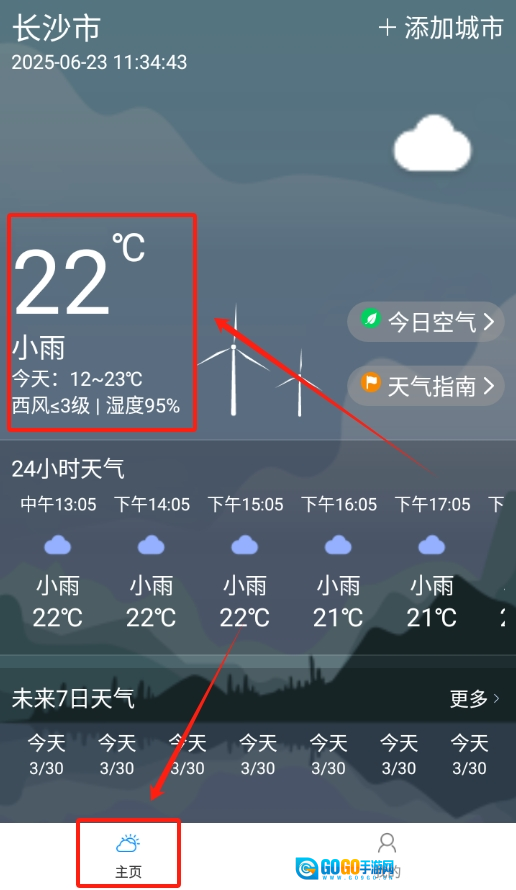 完成上述操作后,就可以在首页查看实时天气预报了。