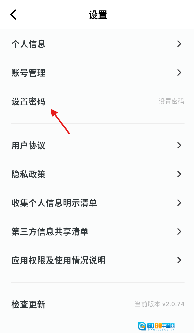 3、进入设置页面后,找到“设置密码”的选项,点击该选项即可进入密码设置页面。