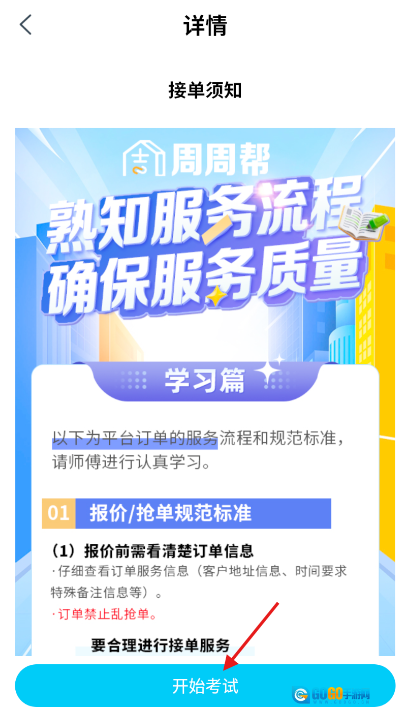 4、在已选定的培训内容详情页面里,找到页面底部的“开始考试”按钮并点击,即可进入考试界面。