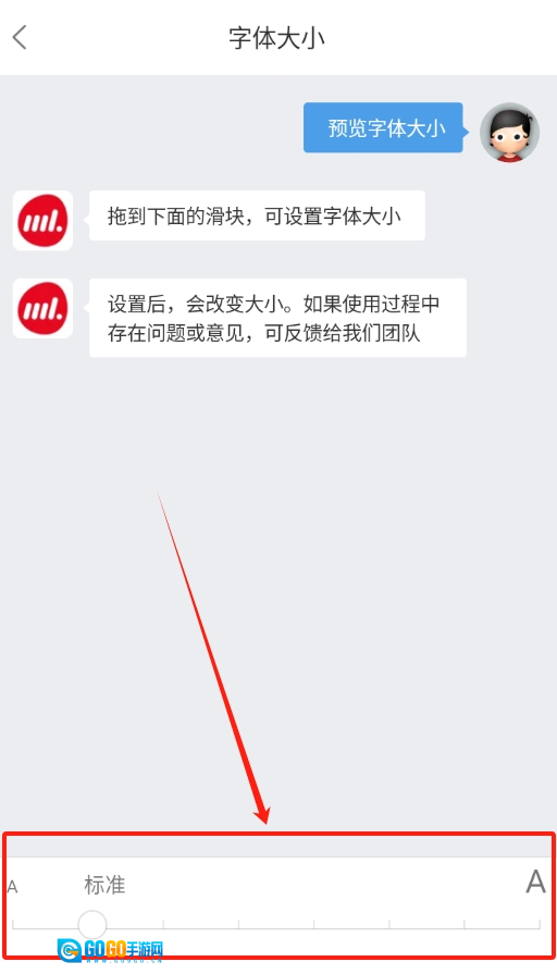 3、此时,底部会浮现白色小圆块,左右滑动这些小圆块,即可轻松调节字体大小。