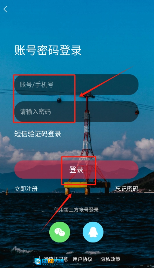 1、启动魅力增城网应用程序,在登录界面输入手机号码与登录密码,完成账户登录操作。