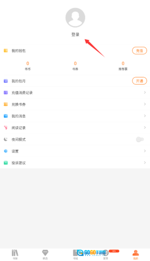 进入掌读看书应用后,点击底部导航栏中的“我的”图标,即可进入账户管理页面。