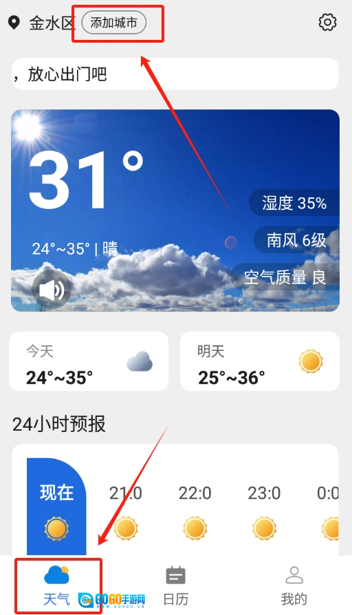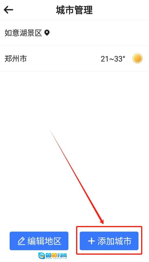 1、打开软件后直接查看首页,在页面左上角能找到一个添加城市的按钮,点击该按钮即可开始相关操作。